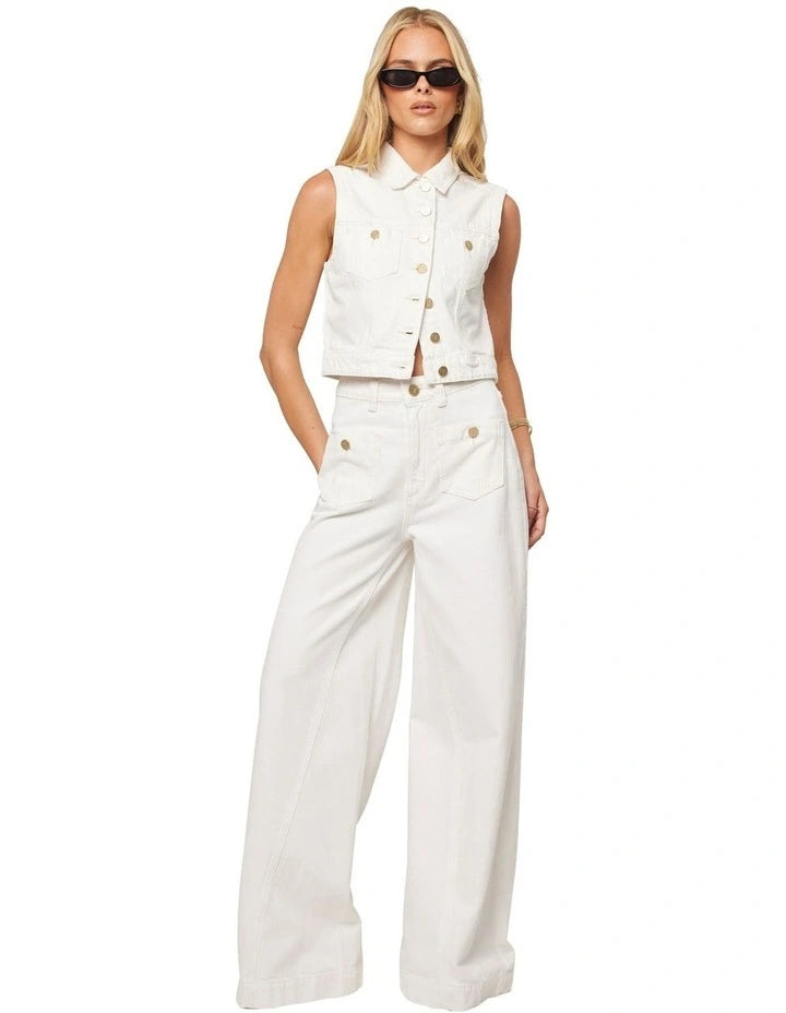 • Our widest style yet. Designed with a high-rise waist that sits comfortably on your natural waist, these white jeans with gold detailing feature an extra-wide leg from hip to hem, adding flair to any outfit, literally