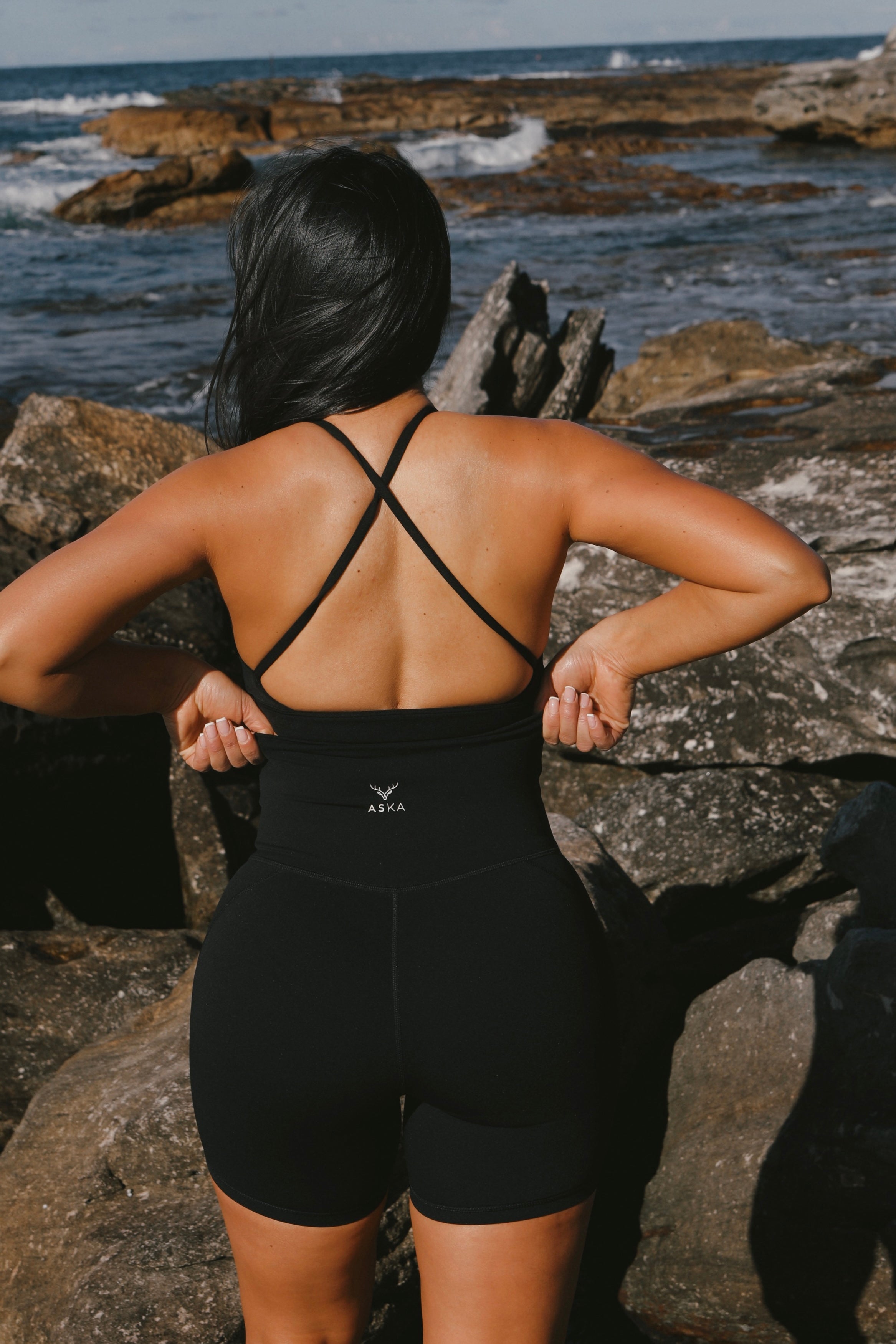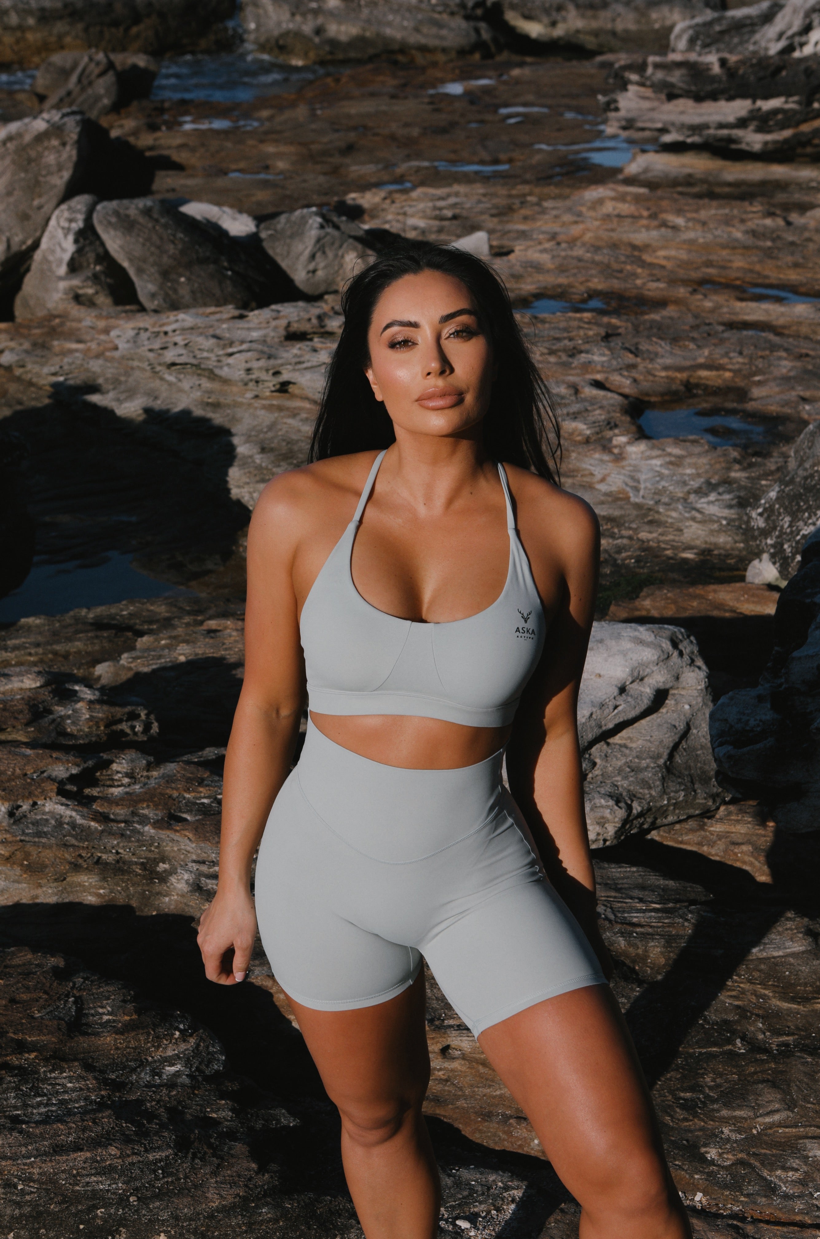 The chic criss-cross back with thin straps adds a trendy touch, while the removable padding ensures a customizable fit.