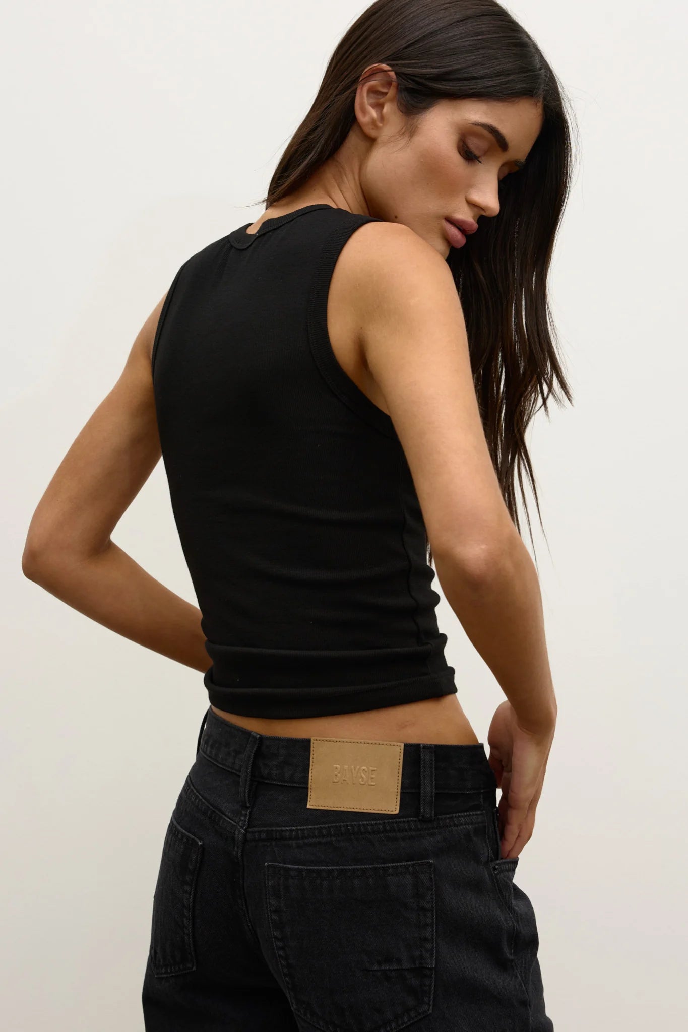 The Elle Tee redefines a classic silhouette with modern edge. Designed in a soft, ribbed fabric, it features subtle shoulder cut-outs and a fitted shape that flatters the form. Effortlessly elevated, this piece transitions seamlessly from day to night.