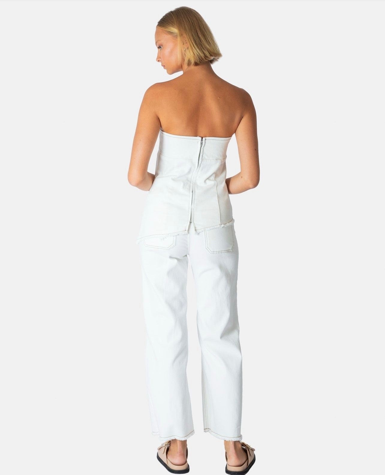 Pair these statement pants with our matching Dark Denim Tube Top, also adorned with strategically placed rips for a coordinated and fashion-forward ensemble.