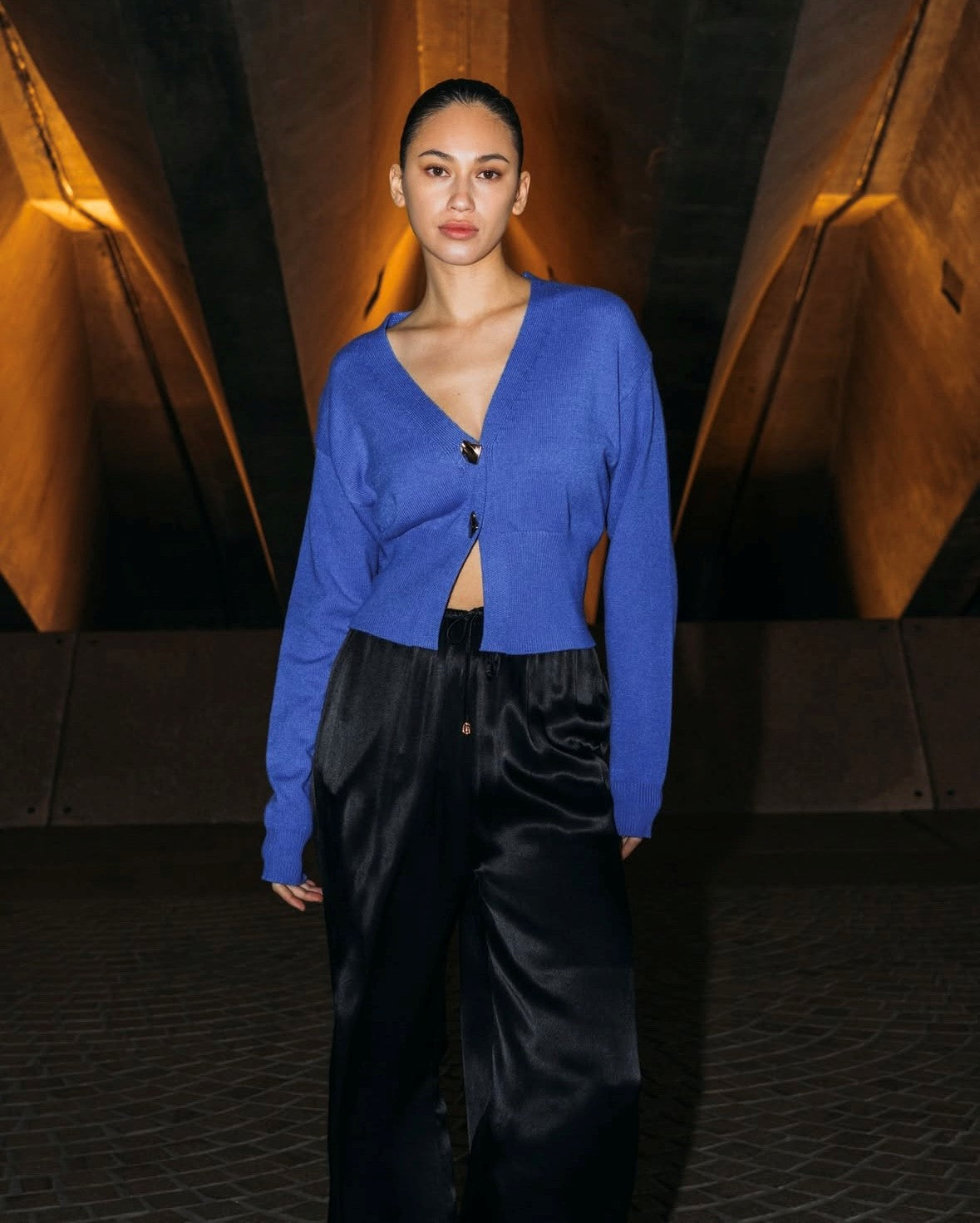 The Midnight Riviera Knit turns heads with its electric cobalt hue and sculptural details. Designed with a deep V neckline, asymmetrical button closure, and subtly cropped hem, it delivers a flattering, body-contouring fit while staying effortlessly relaxed. Lightweight yet structured, it’s the ideal piece for transitional layering—whether you're rooftop-bound or wandering cobbled streets at sunset.