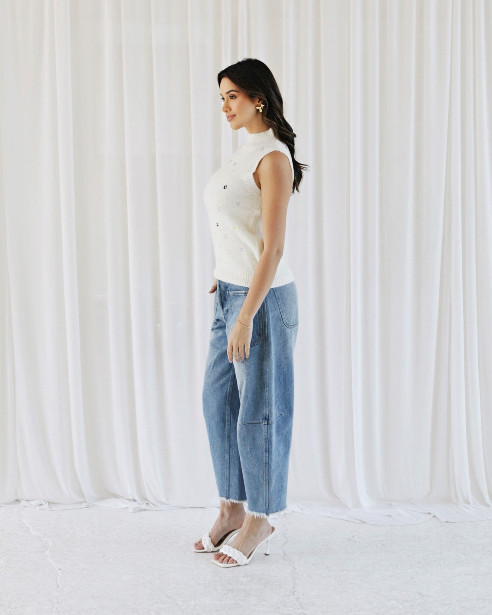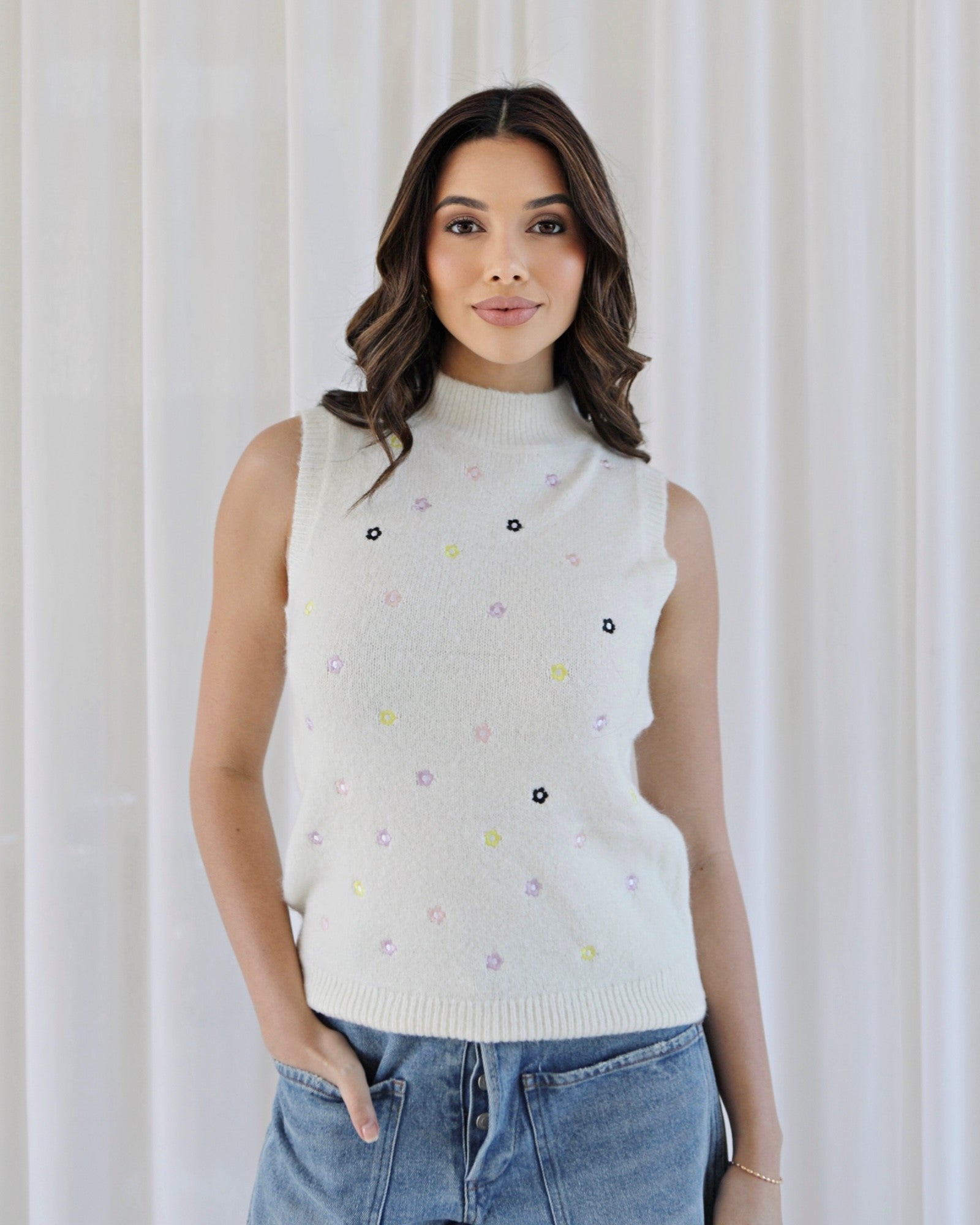 Meet our High Neck Knit Singlet, a chic and cozy piece adorned with delicate floral designs. The high neck offers a stylish touch, while the soft knit fabric ensures comfort. Perfect for layering or wearing on its own, this singlet adds a feminine flair to any outfit.