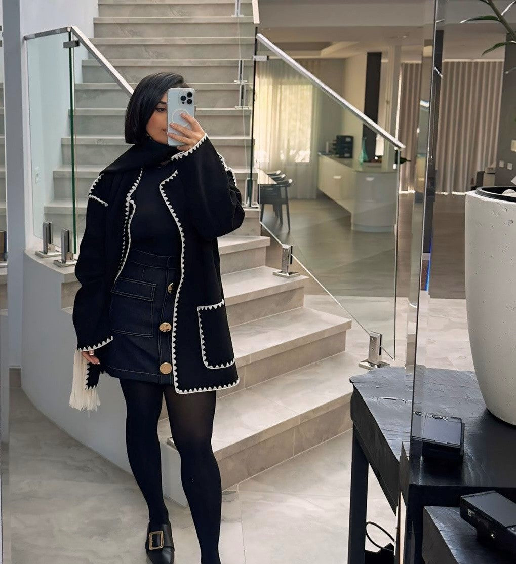 And let's not forget about the matching scarf. Made from the same premium materials as the jacket, it's not just an accessory—it's a versatile companion. Wear it draped elegantly around your neck for a classic look, or let it cascade down your shoulders for a more relaxed vibe. The choice is yours, and either way, you'll exude effortless charm.
