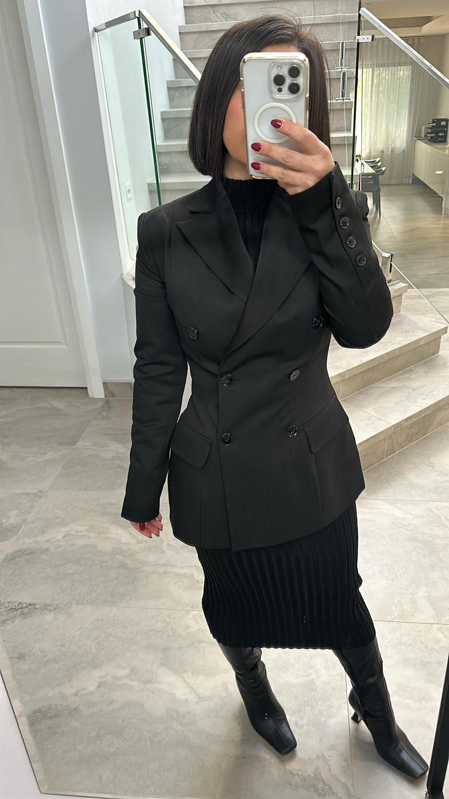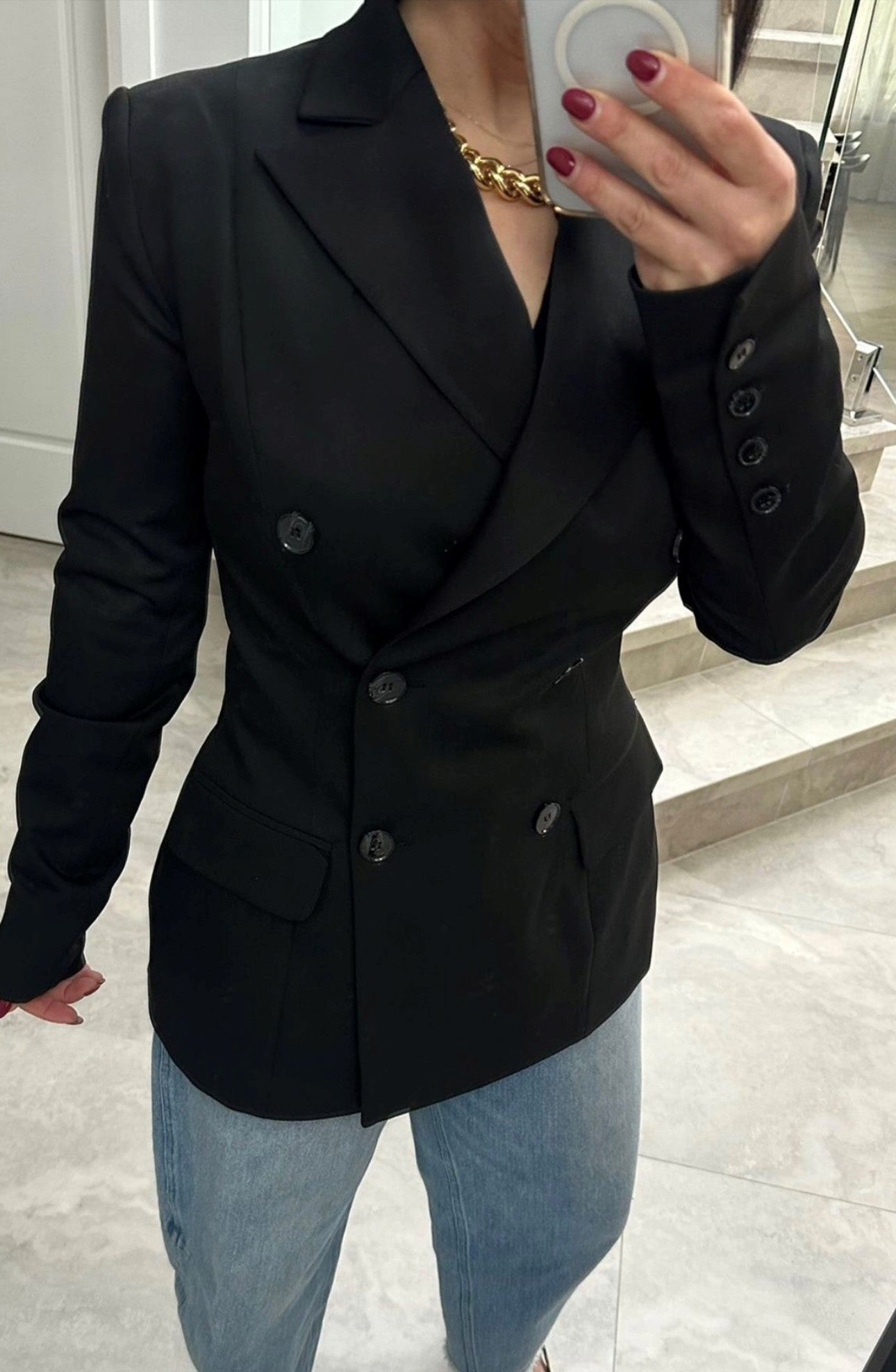 Step into sophistication with our impeccably tailored blazer, designed to accentuate your silhouette with its tight-fitted waist. Featuring a striking V-neck style with elegant collars and structured shoulder pads, this blazer exudes confidence and style.