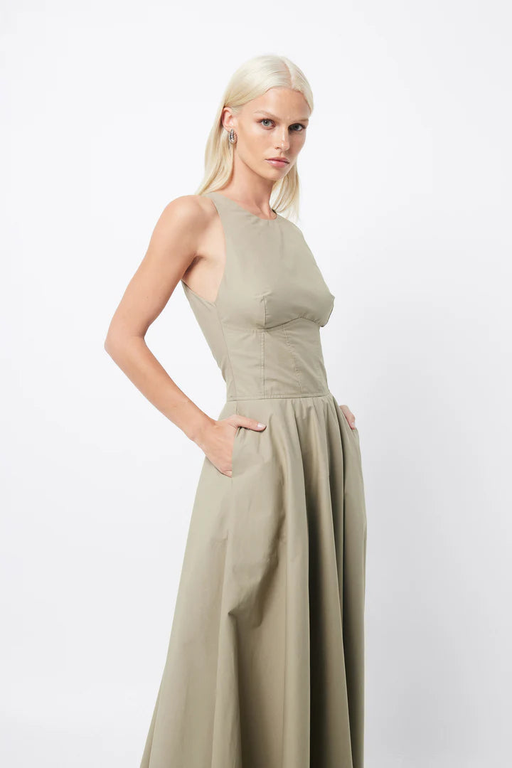 The Homage Maxi Dress is crafted from pure crisp cotton and is a feminine take on the classic shirt dress. Fitted through the torso with a flared A-line skirt, the stitch detail at the waist flatters every shape. Keep accessories pared back to for a modern, understated aesthetic.