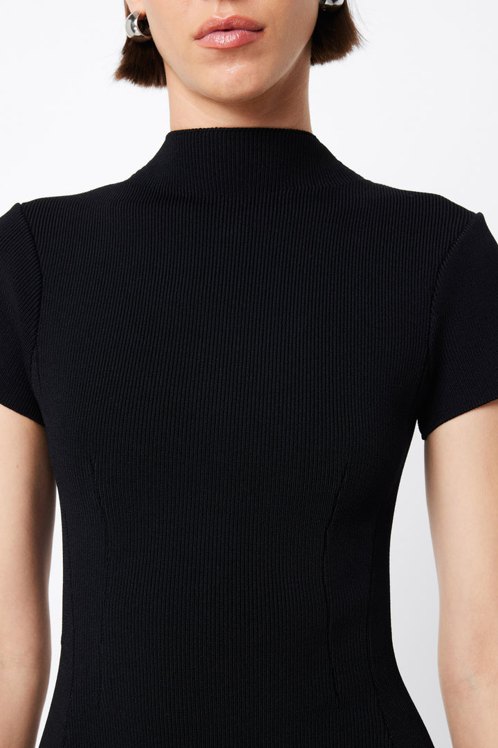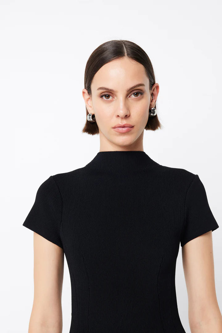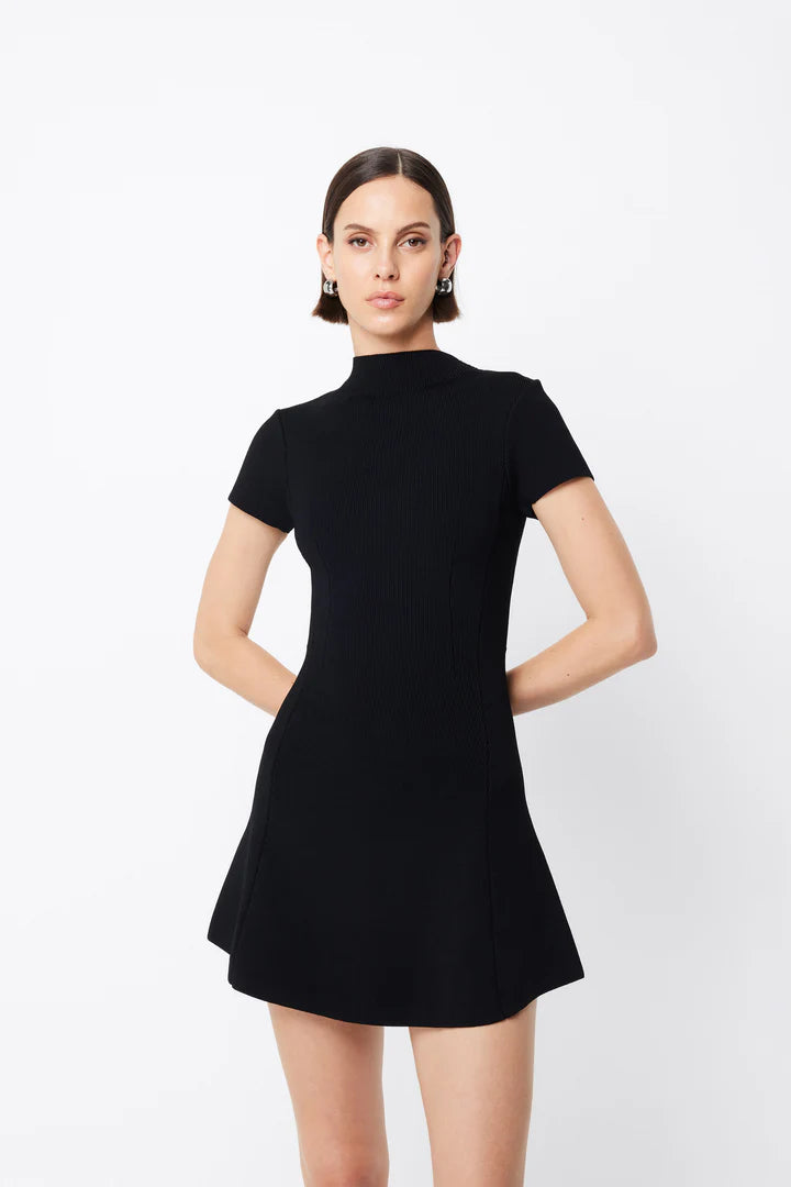 Cut from our signature crepe knit, the Manhattan Mini Dress exudes timeless elegance with a contemporary edge. Featuring a high neckline, cap sleeves, and a fitted bodice that flares into an A-line mini skirt, it offers a flattering silhouette for any occasion. Perfect for both day and evening, this dress pairs effortlessly with minimal accessories for an elegant, refined look.