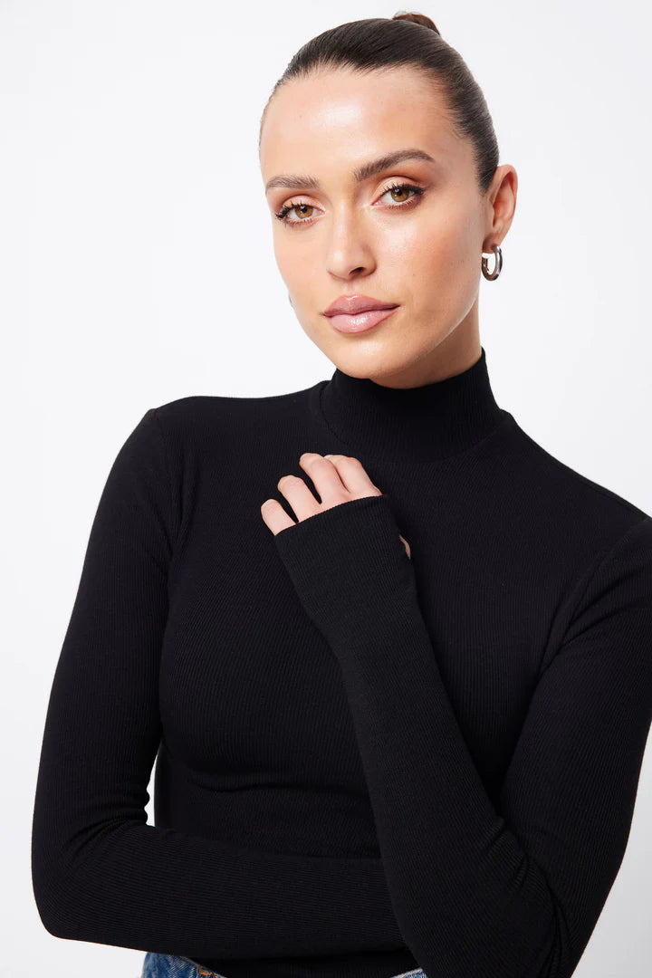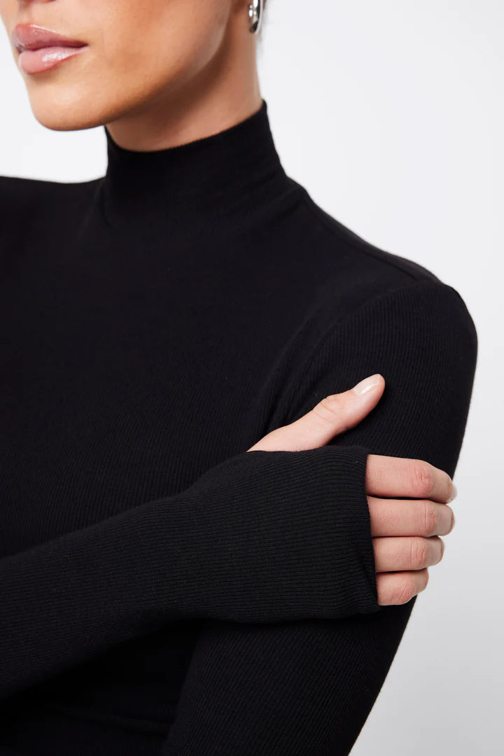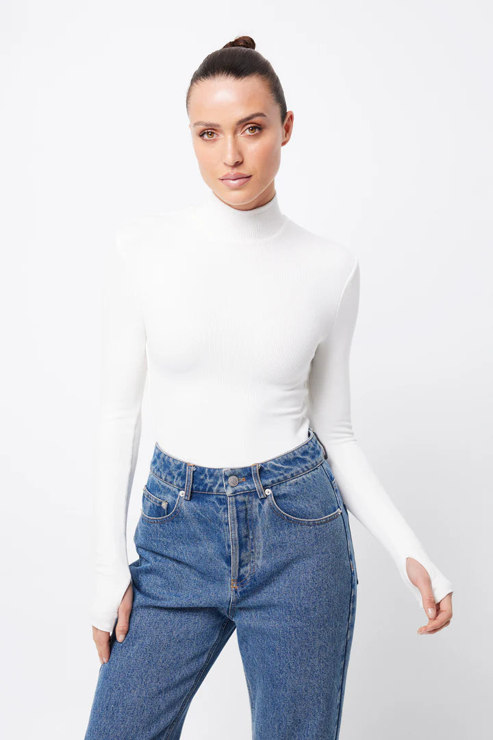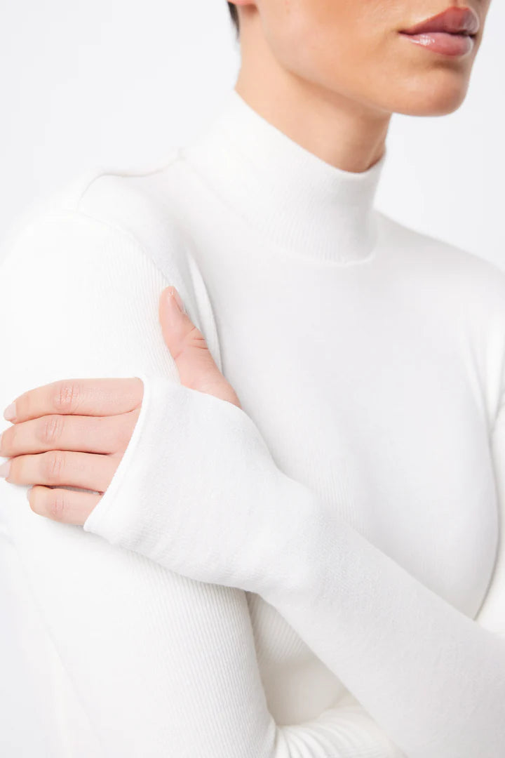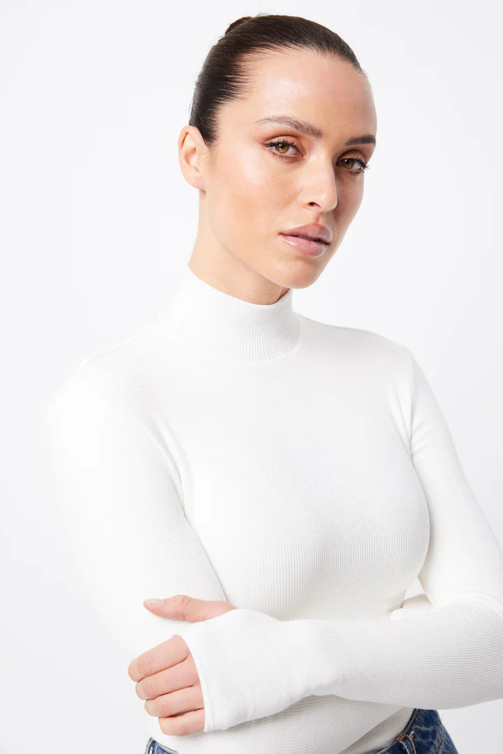 The Oslo Top in White, is crafted to blend seamlessly into your capsule wardrobe, making it essential for the season. Made from a soft, double-layered ribbed jersey fabrication this top has considerable stretch and is designed to keep you warm with its high neckline and long sleeves with thumb-hole detailing. Perfectly versatile, this top complements your current wardrobe and smoothly shifts from day to night.