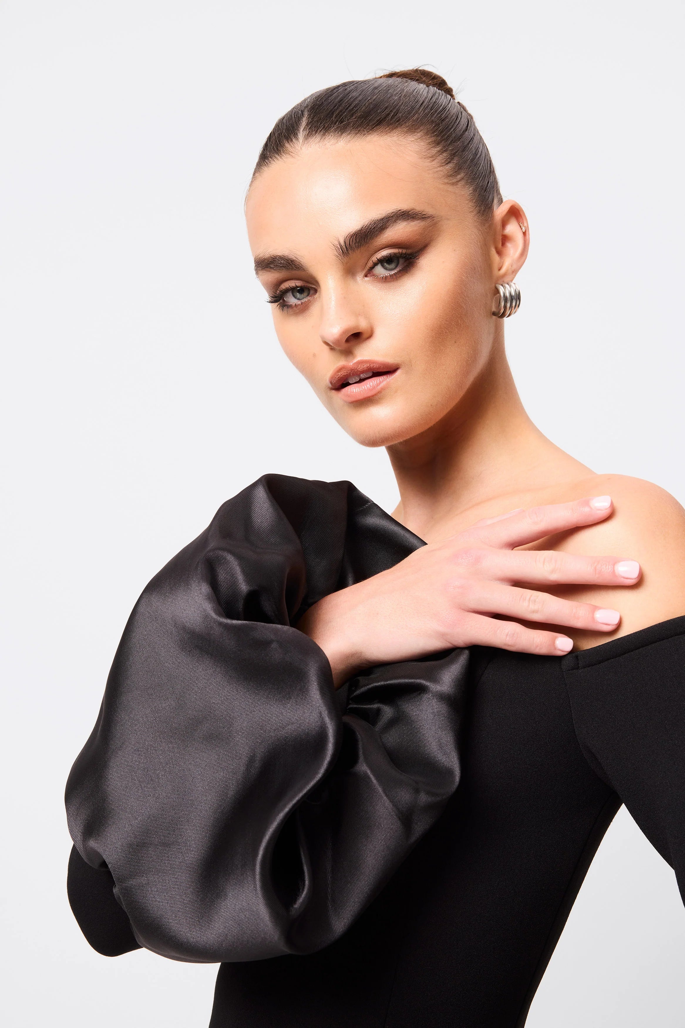 The On My Mind Maxi Dress in classic black is designed to turn heads with its refined elegance and timeless appeal. Crafted from a premium fused crepe knit fabrication, this fully lined silhouette features an off-shoulder neckline, long sleeves, and dramatic bell cuffs in crisp taffeta for a touch of modern romance. Fitted through the body to contour and flatter, it creates a sculpted silhouette that feels both polished and feminine. Pair with statement jewellery and heels for an unforgettable event look.