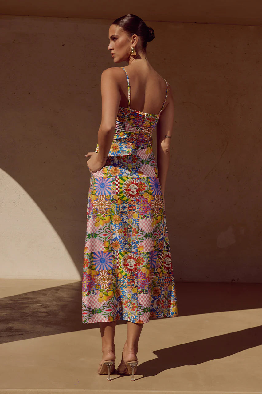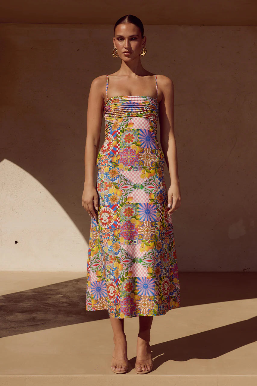 With delicate pleat details and a feminine summer print, our Anacapri Midi Dress is perfect for a summers night in Capri.