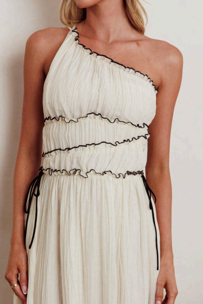 Introducing the Brianna Creme Maxi Dress – the epitome of effortless elegance. This casual maxi dress, in a soft creme hue, is designed for comfort and style. Made from lightweight, breathable fabric, it drapes beautifully, creating a flattering silhouette for any body type. Perfect for sunny days or relaxed evenings, the Brianna dress pairs effortlessly with sandals for a day out or can be dressed up with heels for a night on the town.